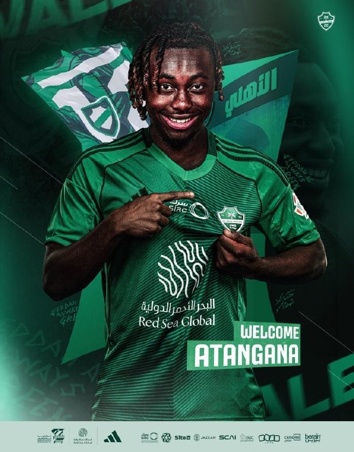 新科亚冠冠军,沙特豪门吉达国民花费2500万欧元从兰斯买下了身价为1000万欧元的阿坦加纳(Valentin Atangana)。