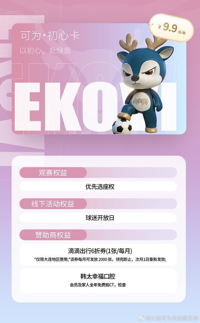 北京时间3月12日,据大连可为官方消息,大连可为官方小程序正式上线,俱乐部还公开招募可为大会员。大连可为共推出五档不同价位的会员,各档位卡种均搭配观赛、周边、线下活动、青训体验及赞助商专属权益,且权益随卡种价位提升逐步升级。初心卡:9.9元/年同行卡:99元/年逐风卡:666元/年笃信卡:...